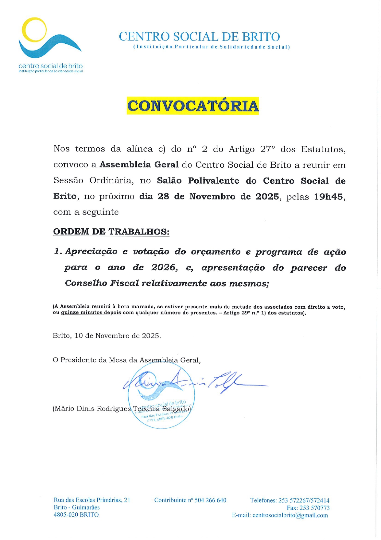 Novembro 14, 2025Novembro 14, 2025Convocatória Assembleia Geral Ordinária 28 de Novembro 2025Notícias